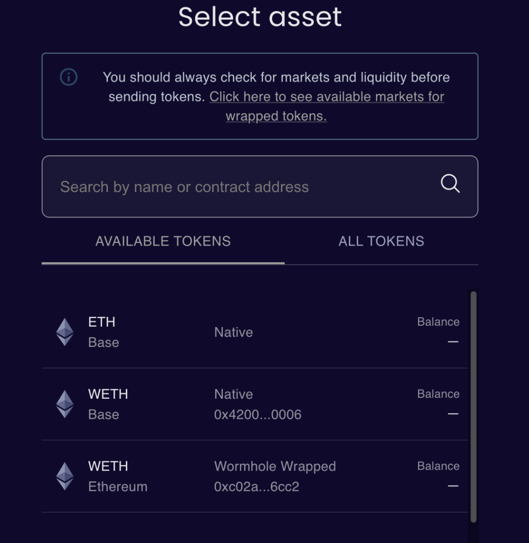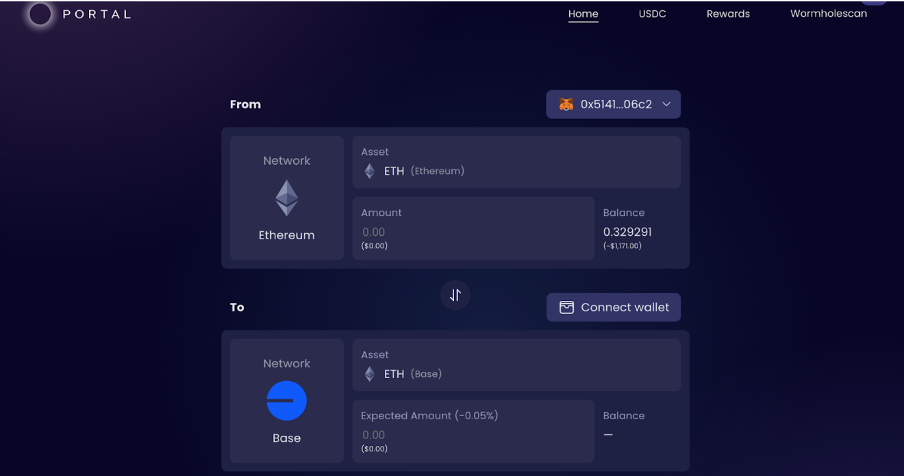 Sur Portal, vous pouvez choisir de connecter deux wallets différents: celui d’envoi et celui de réception. Vous avez le choix entre des ETH Base et WETH Base, qui utilisent le liquid staking. Pour en savoir plus sur le liquid staking, nous vous invitons à consulter notre article.