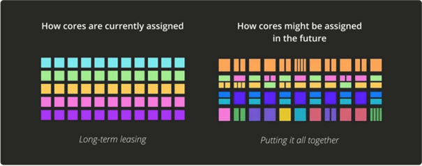 Le concept de base à l’origine de l’évolution de Polkadot 2.0 est centré sur l’introduction de « cœurs élastiques », offrant des capacités de calcul adaptables. À l’heure actuelle, les parachains fonctionnent en utilisant des cœurs de processeur fixes dans le supercalculateur Polkadot. Le système à venir allouera des ressources de manière flexible, répondant aux besoins en temps réel. Ainsi, les propriétaires de coretime peuvent le diviser ou l’échanger. Une application A1 peut s’exécuter sur le cœur C1 pendant une période finie. Puis une autre application A2 peut s’exécuter sur ce cœur, ou l’application A1 peut continuer à s’exécuter sur un autre cœur C2. aussi, certaines applications peuvent cesser de s’exécuter pendant un certain temps et reprendre plus tard.